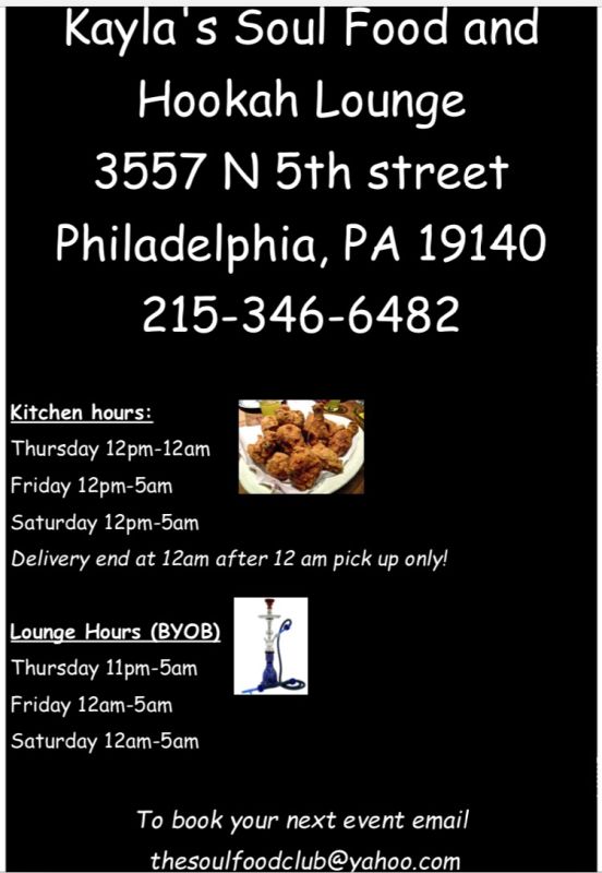Best Soul Food and SEAFOOD in the city located in North Philadelphia call 215-771-1041 for more info. For more information please call 267-519-8661 267-519-8927. Our butter sauce which we call the oils made a big difference with our food.